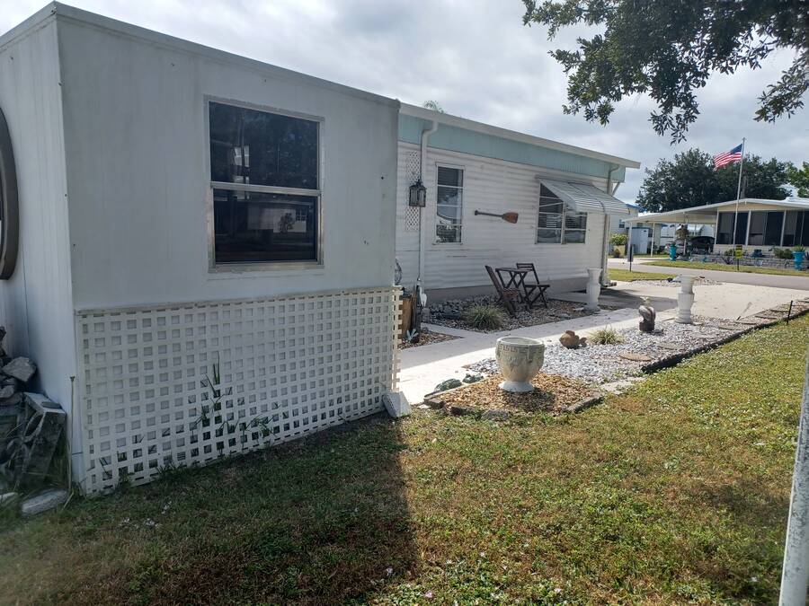 Welcome to your perfect little getaway in this active adult 55 plus community! This beautifully updated 2-bedroom, 1-bath mobile home is bursting with charm and modern touches. Step inside to find a bright, open layout with stylish finishes, fresh paint, and upgraded flooring throughout. The kitchen shines with a cute corner sink area and a great island, making it as functional as it is cute. Outside, enjoy your own private oasis with a spacious yard perfect for relaxing, gardening, or entertaining under the stars. Whether you're sipping coffee on the porch or hosting a weekend BBQ, the outdoor space is a true highlight. You'll love the convenience and lifestyle this home offers. Whether you're looking for a cozy year-round residence or a sunny seasonal retreat, this gem checks all the boxes! The inviting bedroom features a spacious, open layout that seamlessly blends rustic charm with modern elegance. Two sliding barn doors mounted on sleek black hardware, offering both visual warmth and functional versatility. Inside, natural light pours in through windows, illuminating soft neutral tones and cozy textures. The barn doors not only serve as a design focal point but also provide privacy when needed, gliding effortlessly to enclose the space. Whether styled with farmhouse flair or minimalist accents, this bedroom strikes a perfect balance between comfort and character.